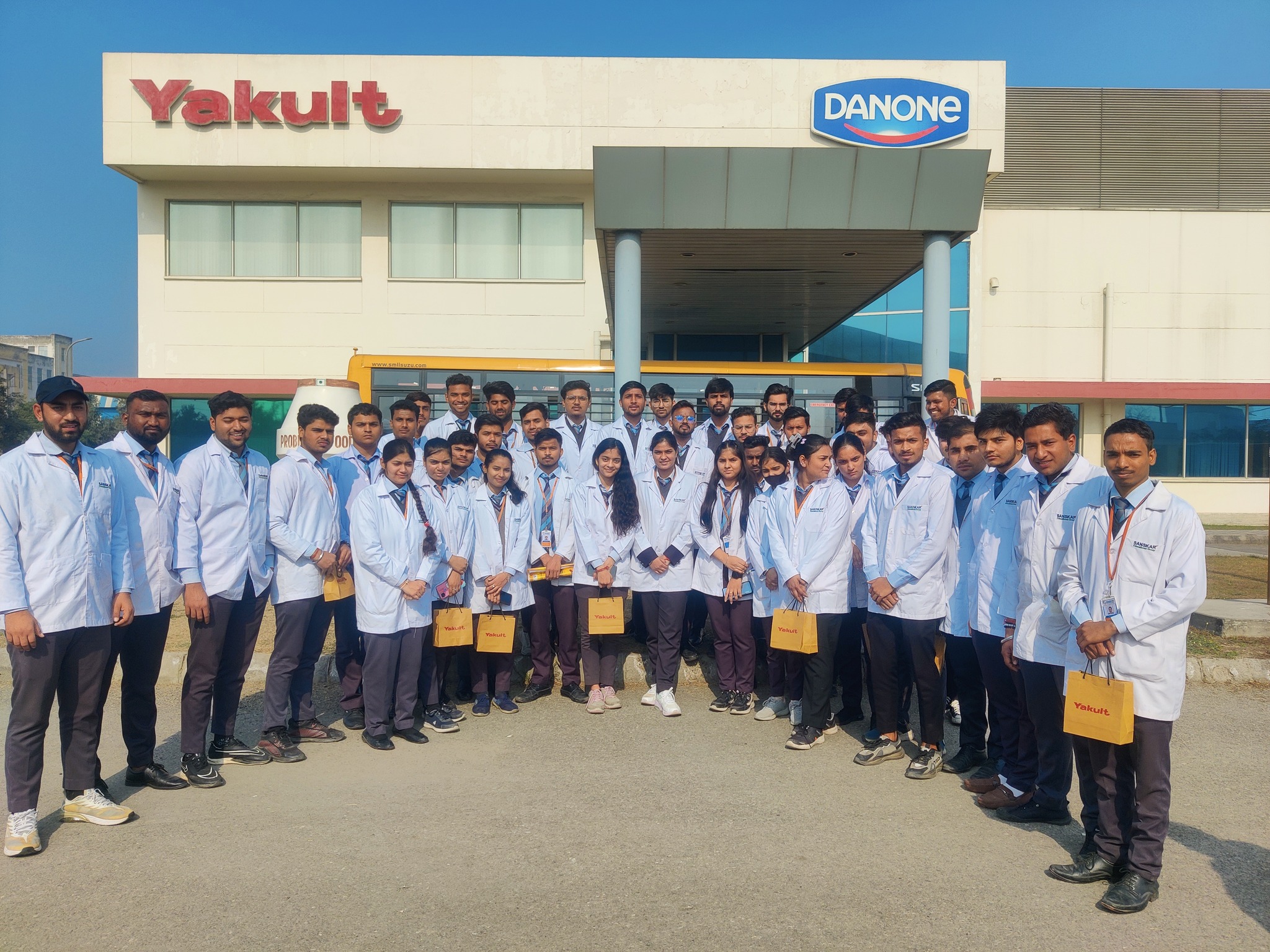 Sanskar College of Pharmacy & Research organized an Industrial visit to Yakult Danone India Private Limited at Rai industrial area Sonepat, Haryana. On 07 December 2023, B.Pharm. II year students visited the plant to gain practical knowledge about production process, inventory management, quality control, supply chain management and organizational culture.