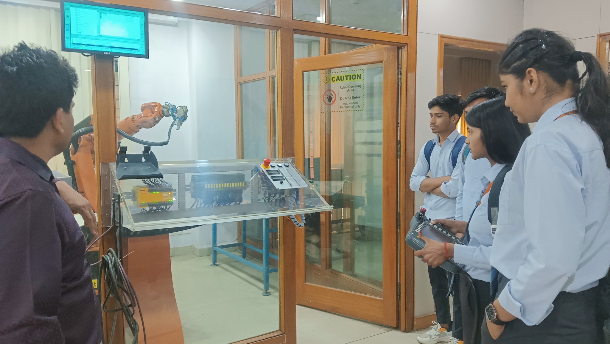 Mechanical Engineering Department of Sanskar College of Engineering and Technology, organized an Industrial Visit for the students of B. Tech. and Diploma- ME IInd Year and IIIrd Year on dated 13th May at Robotech Automation Pvt Ltd at Meerut Road, Duhai Industrial Area, Ghaziabad to gain practical knowledge about Robotics Integration Services, Robotic Automation Services, PLC Training Services, Robotics Training Services and Automation Training Services. During the visit students got learn about ultra-modern infrastructure facility that is segregated into various fully functional units like manufacturing, quality testing, research & development, warehousing & packaging, etc.