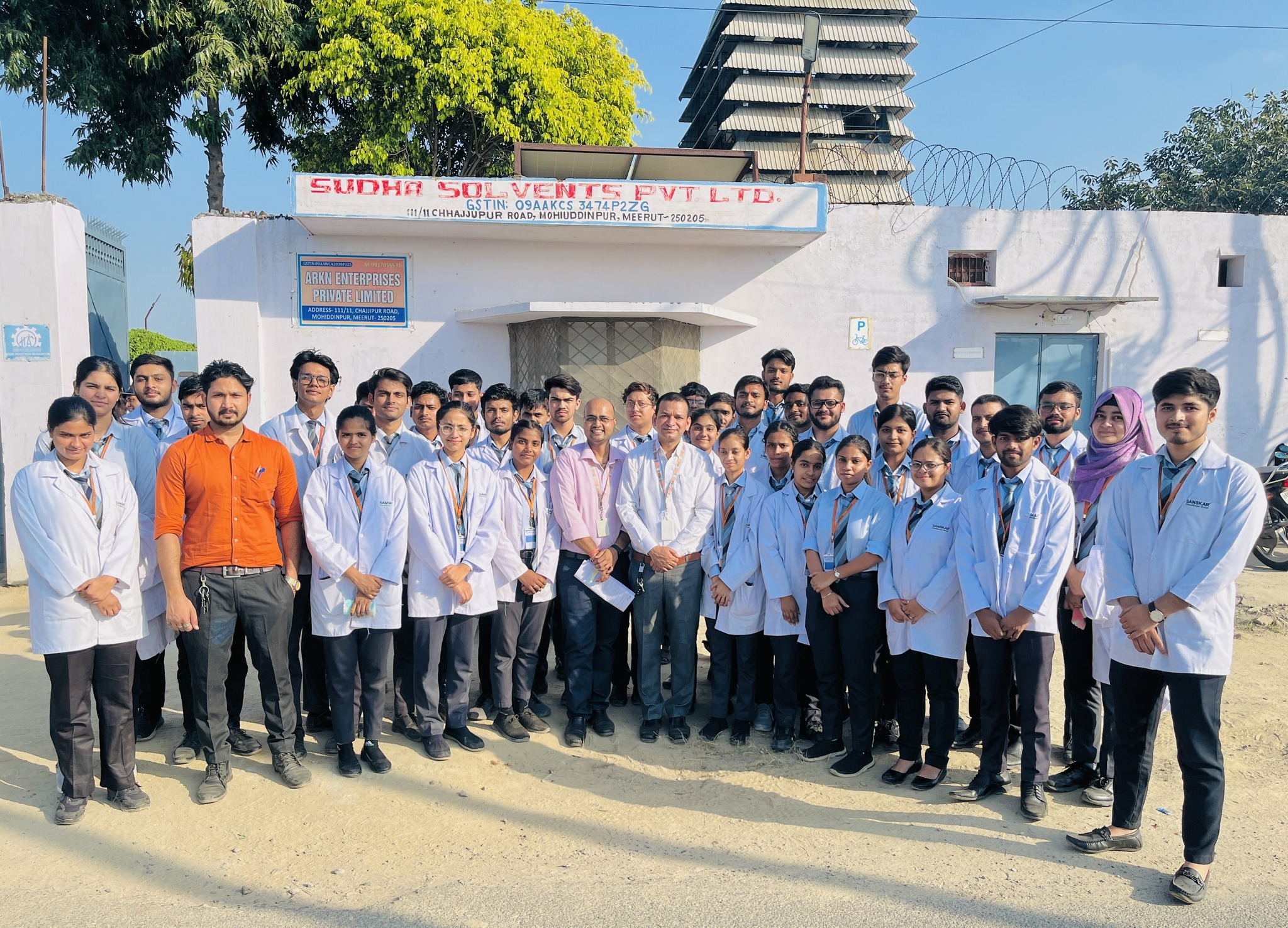 Sanskar College of Pharmacy and Research, Ghaziabad organized an Industrial visit to Sudha Solvents Pvt. Ltd., Meerut on 5th October, 2024 for B.Pharm students. The industrial visit to Sudha Solvents Pvt. Ltd. aimed to provide B.Pharm students with practical insights into the pharmaceutical manufacturing process and the operational aspects of a solvent manufacturing unit. This experience is crucial for bridging the gap between theoretical knowledge and real-world application in the pharmaceutical industry. Sudha Solvents Pvt. Ltd. is a well-established company specializing in the production of various solvents and chemicals used in pharmaceuticals and other industries. The company is known for its commitment to quality and adherence to safety standards. The visit began with an introductory session conducted by the company’s management. They provided an overview of the company’s history, mission, and vision, highlighting its contributions to the pharmaceutical sector. Students were given a guided tour of the manufacturing facility. They observed the production line, including raw material processing, solvent extraction, and packaging operations. Students learned about the various tests conducted to ensure the purity and quality of the solvents produced. The lab personnel explained analytical techniques like chromatography and spectrophotometry. The students were briefed on the safety protocols implemented in the plant, including the use of personal protective equipment (PPE), emergency procedures, and environmental safety measures. It was an enriching experience for B.Pharm students, providing valuable insights into the practical aspects of the pharmaceutical industry. Such visits are essential for students to apply their theoretical knowledge and prepare for their future careers in pharmacy. There were 43 Students and Faculty Members (Dr. Ajeet and Mr.Sazid) who became a part of the Industrial Trip. The visit was very well co-ordinated by Dr. Qurratul Ain. We extend our gratitude to the management and staff of Sudha Solvents Pvt. Ltd. for their warm hospitality and informative sessions