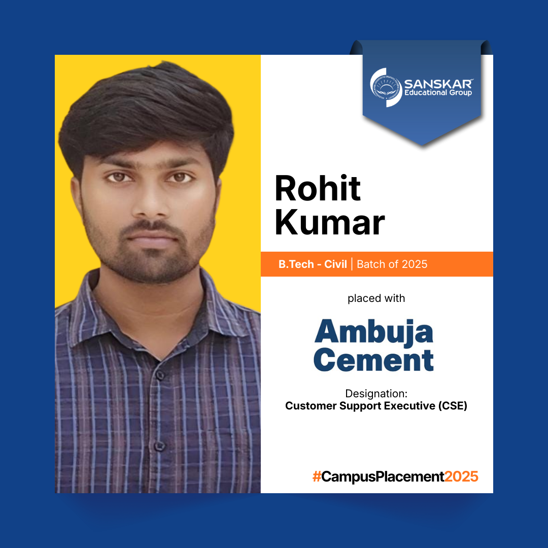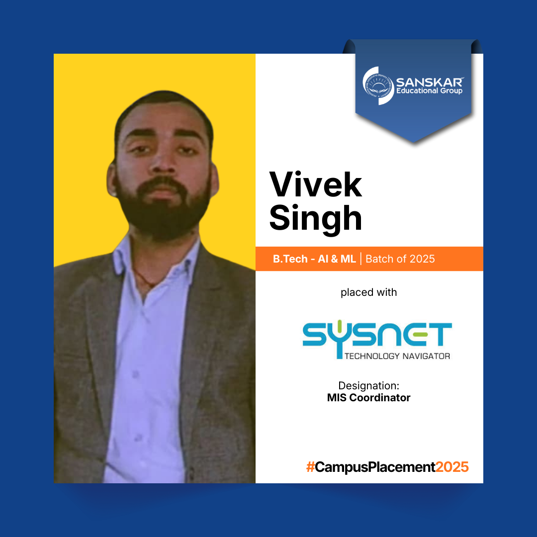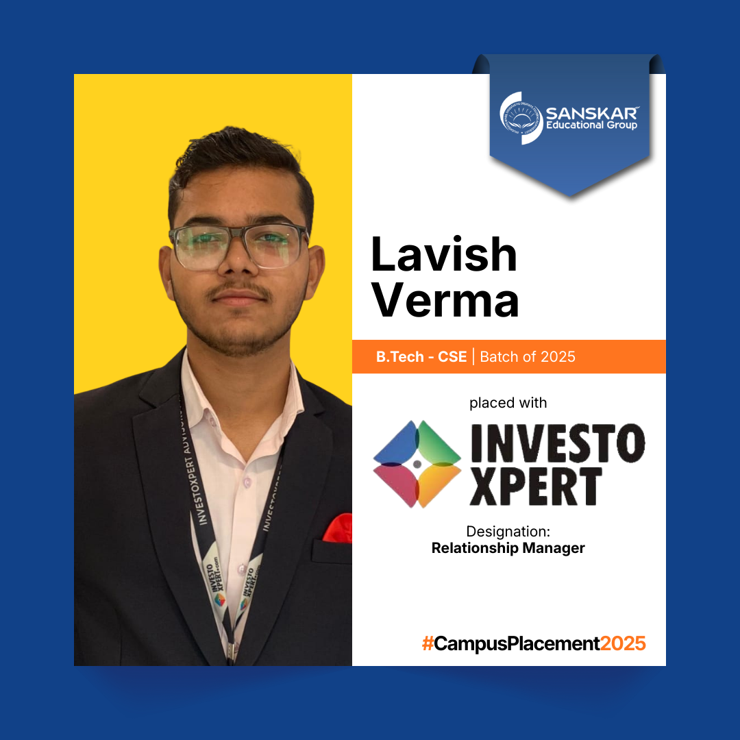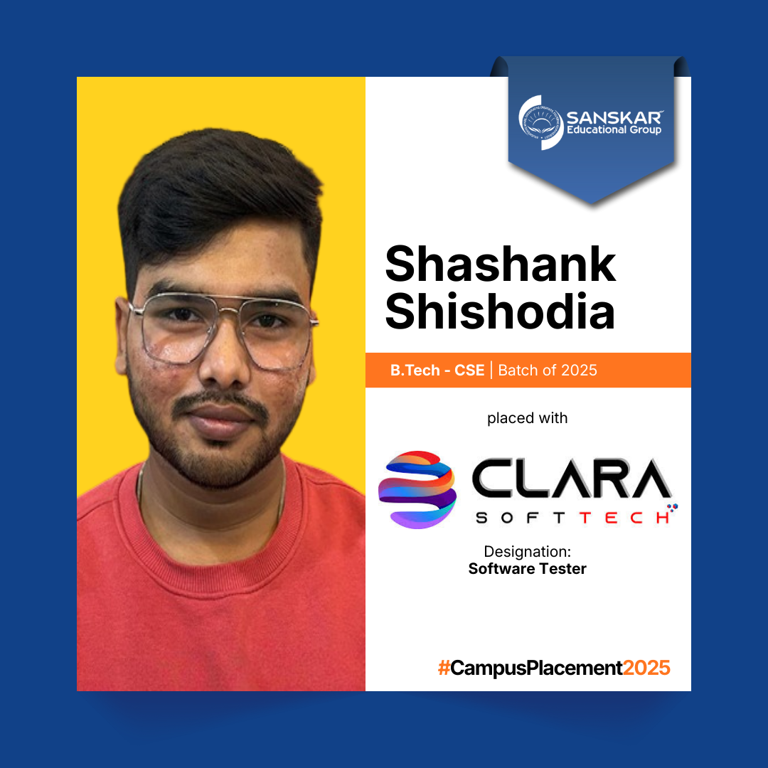 Sanskar Educational Grouphas concluded the placement cycle for its graduates of 2025 with more than 250 students. The highest salary secured this year is an impressive Rs. 7.00 LPA bagged by a B.Tech student with an average salary record of 3.30 LPA.